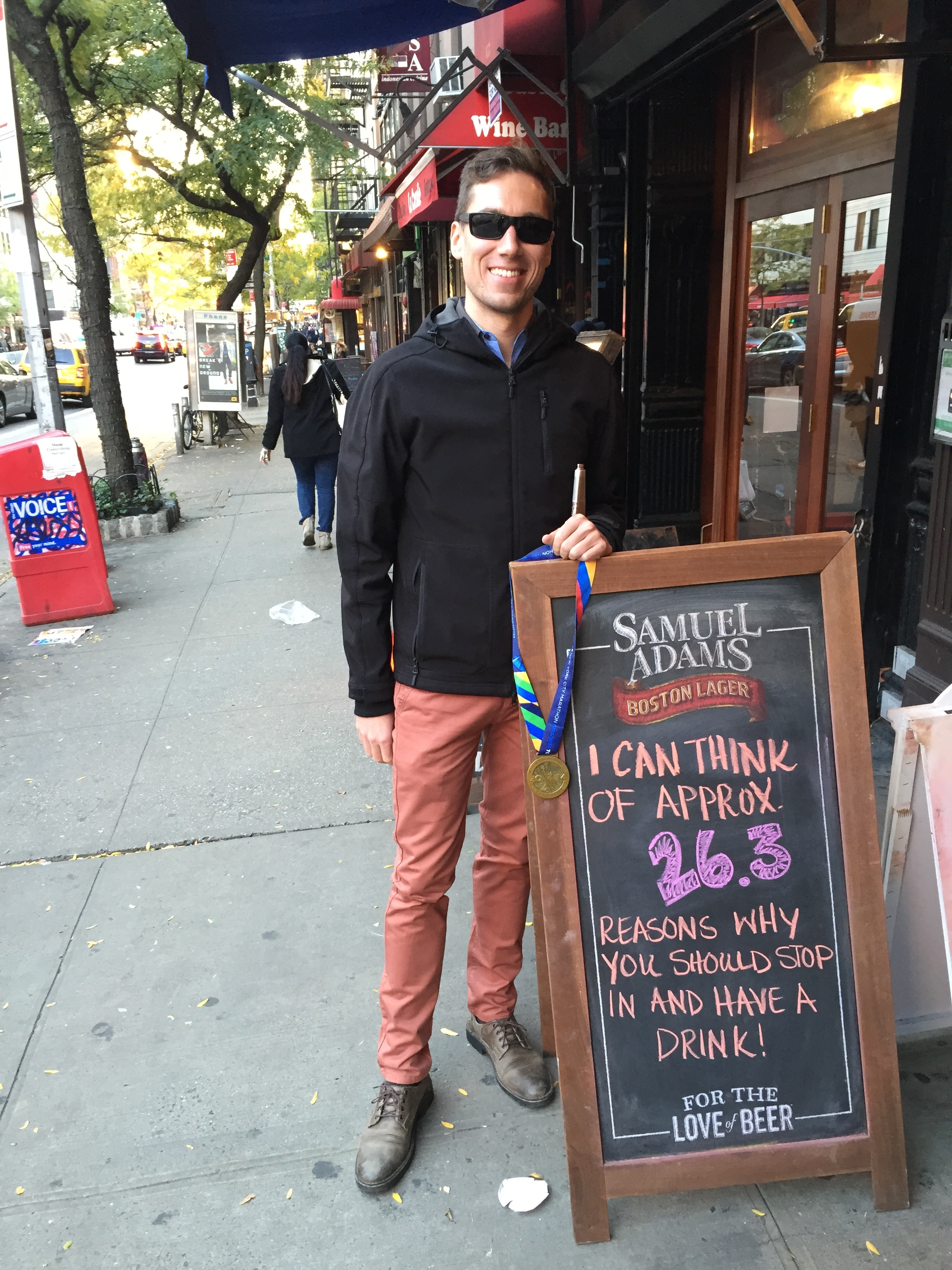 As much as I wanted to stick around and look for others, I was starting to stiffen up in the rain and the less than ten minute walk back to Greg City was all too enticing. But there was no way I was missing the get together later on at St. Augustine’s to celebrate with the new and veteran Broadway runners who all had kickass races. There, I made sure to drink the first three beers with my head, the second three with my personality and the last three with my heart. 🙂